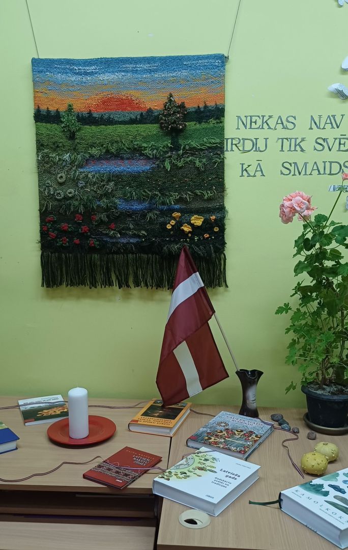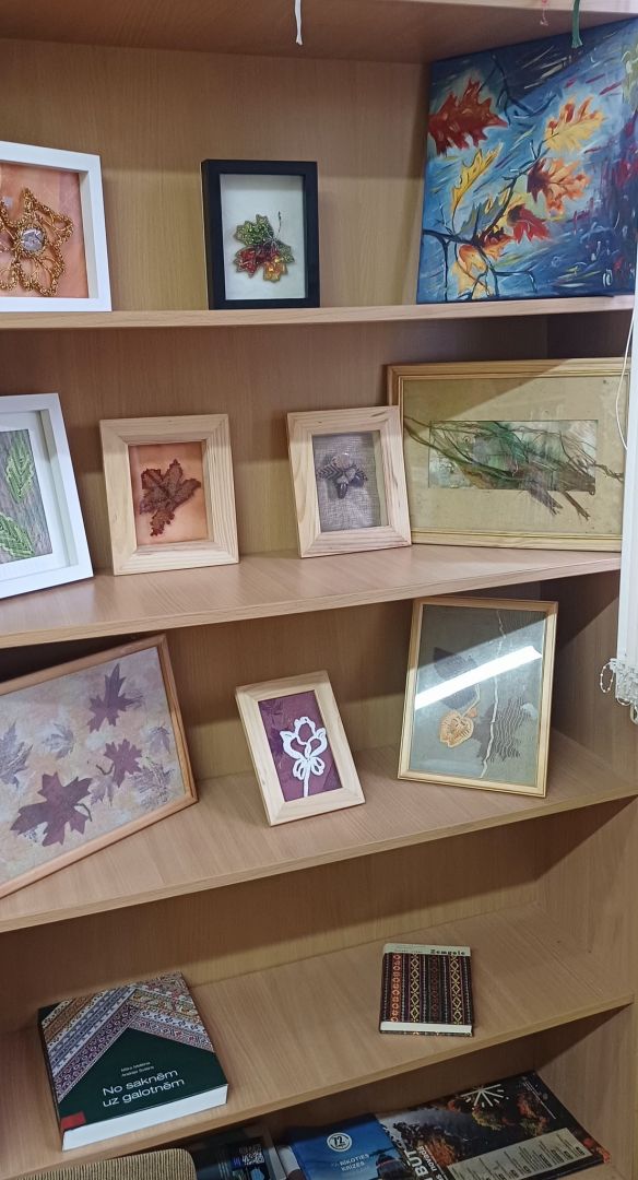 Līdztekus literāriem lasījumiem skārām vēl vienu svarīgu darbošanās ievirzi un tēmu – rokdarbus, kas ne tikai senlaikus bija garos rudens un ziemas vakaru prieks un nepieciešamība, bet arī mūsdienās ir biežs ikdienas pavadonis. Viesos ar tematisku rokdarbu un citādu mākslas darbu izstādi “Rudens mazā rāmīti” Ķekavas rokdarbnieču kopas Labieši dalībnieces. Izstādi papildina tematiska tredicionālai kultūrai veltīta grāmatu izstāde no bibliotēkas krājumiem. Izstāde apskatāma līdz gada beigām.