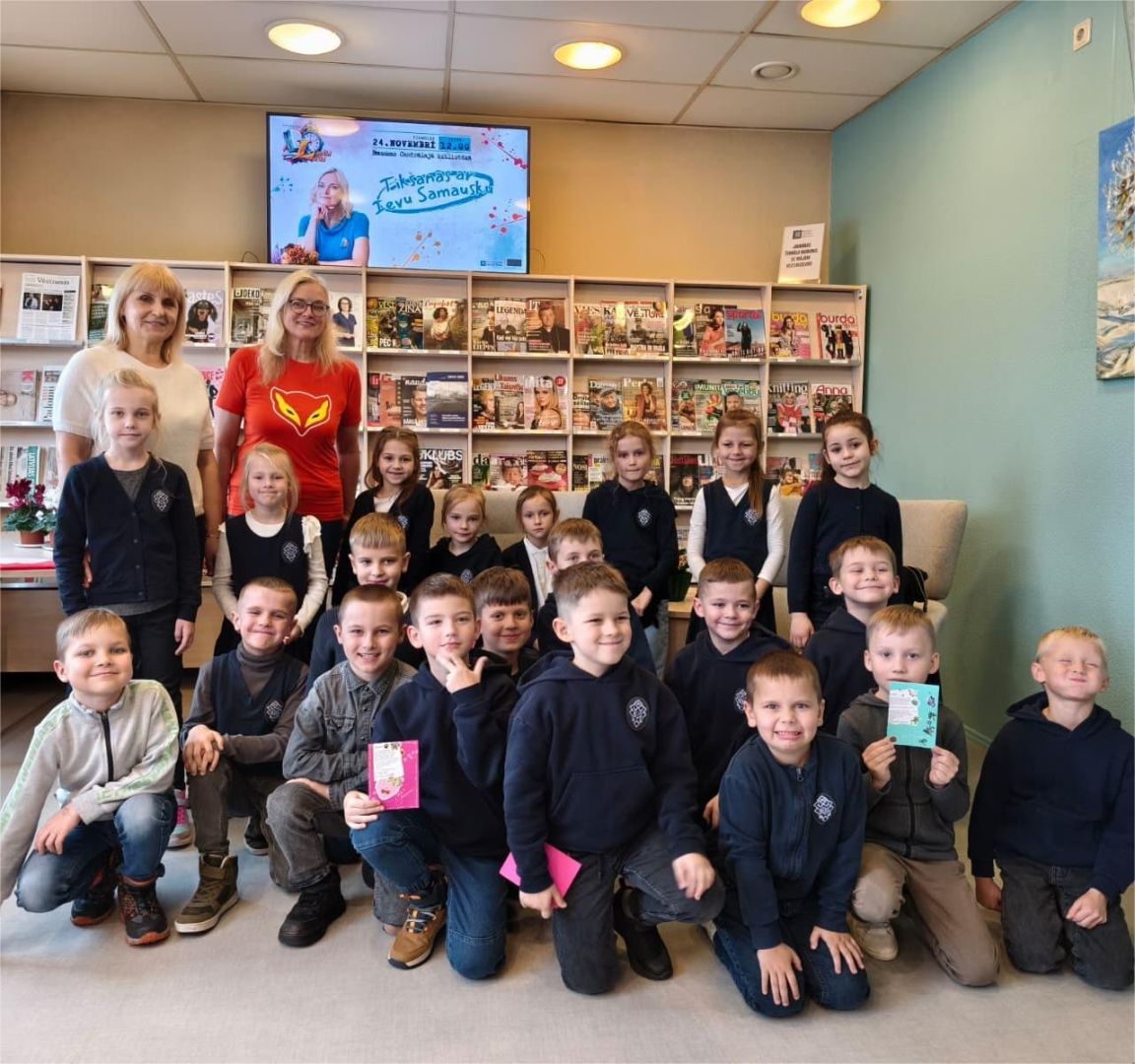 2025. gada 24. novembrī Bauskas Centrālās bibliotēkas lasītavā valdīja īpaša rosība - iemīļotās bērnu grāmatu autores Ievas Samauskas un Bauskas Valsts ģimnāzijas pirmklasnieku tikšanās. Rakstniece klātesošos iepazīstināja ne vien ar savu plašo grāmatu klāstu, bet arī pastāstīja par sevi un savu ģimeni, parādot, ka rakstnieks smeļas iedvesmu tieši sev apkārt esošajos cilvēkos un notikumos. Īpašu azartu pasākumā ienesa kopīga mīklu minēšana no autores dzejas mīklu grāmatām. Izrādījās, ka atrast pareizās atbildes nemaz nav tik vienkārši – tas bija īsts izaicinājums, kas prasīja gan attapību, gan uzmanību, taču sagādāja daudz prieka un jautrības. Pateicamies Ievai Samauskai par sirsnīgo tikšanos un bērniem par aktīvo līdzdarbošanos!
