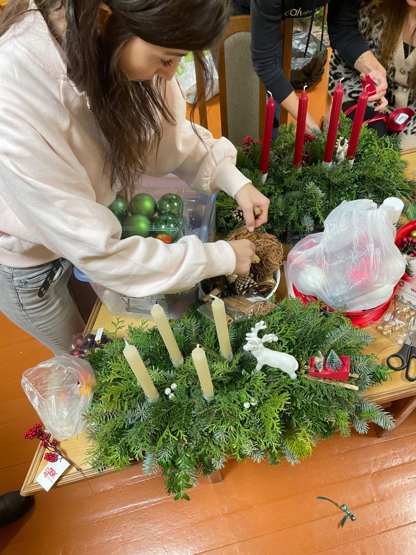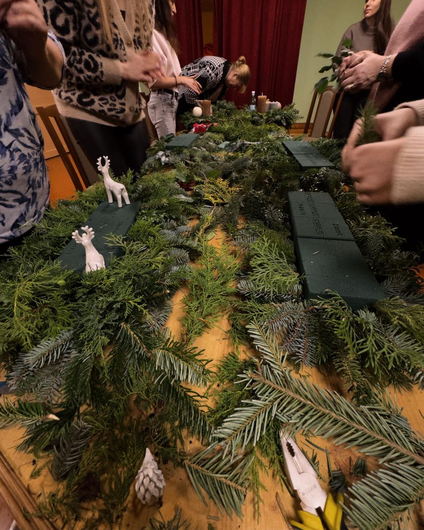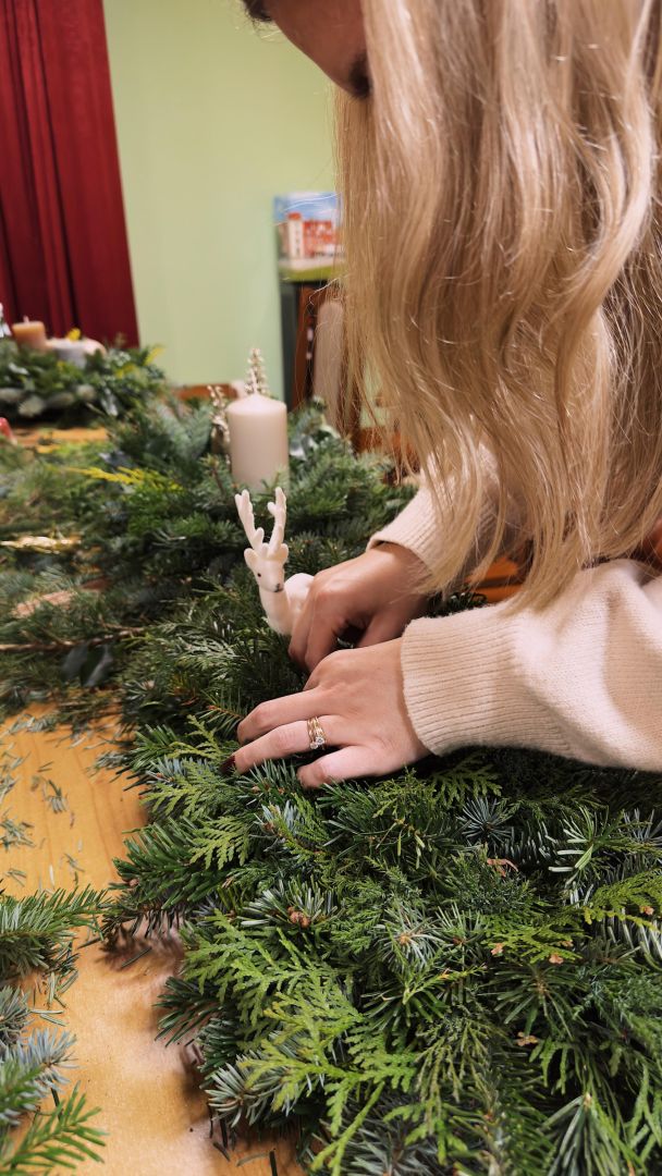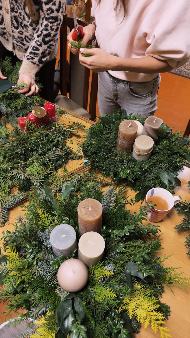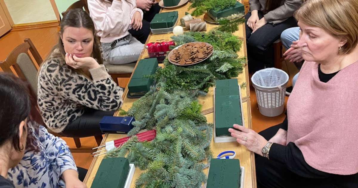 2025. gada 26. novembrī Ādžūnu bibliotēkas grāmatu izsniegšanas punktā Bērzos notika adventes vainagu gatavošanas meistarklase floristikas oāzēs Lauras Janušauskas pavadībā.