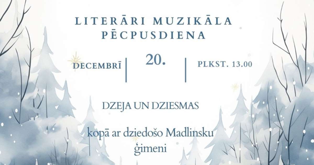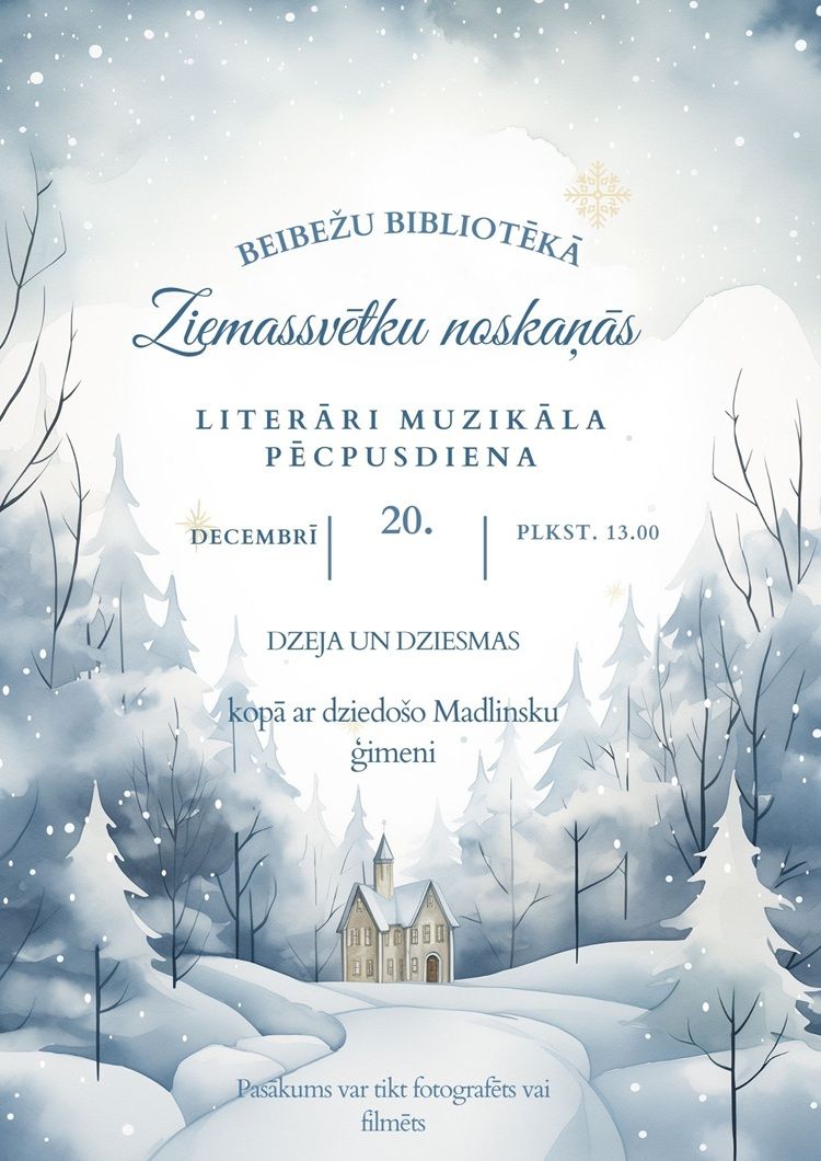 2025. gada 20. decembrī plkst. 13.00 Beibežu bibliotēka aicina uz literāri muzikālu pēcpusdienu "Ziemassvētku noskaņās" kopā ar dziedošo Madlinsku ģimeni.