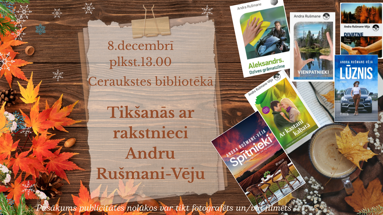 2025. gada 8. decembrī plkst. 13.00 Ceraukstes bibliotēkā viesosies grāmatu autore, romānu konkursu laureāte Andra Rušmane-Vēja.