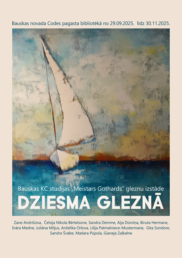 Codes bibliotēkā no 2025. gada 29. septembra līdz 30. novembrim, skatāma Bauskas Kultūras centra studijas "Meistars Gothards" gleznu izstāde "Dziesma gleznā".