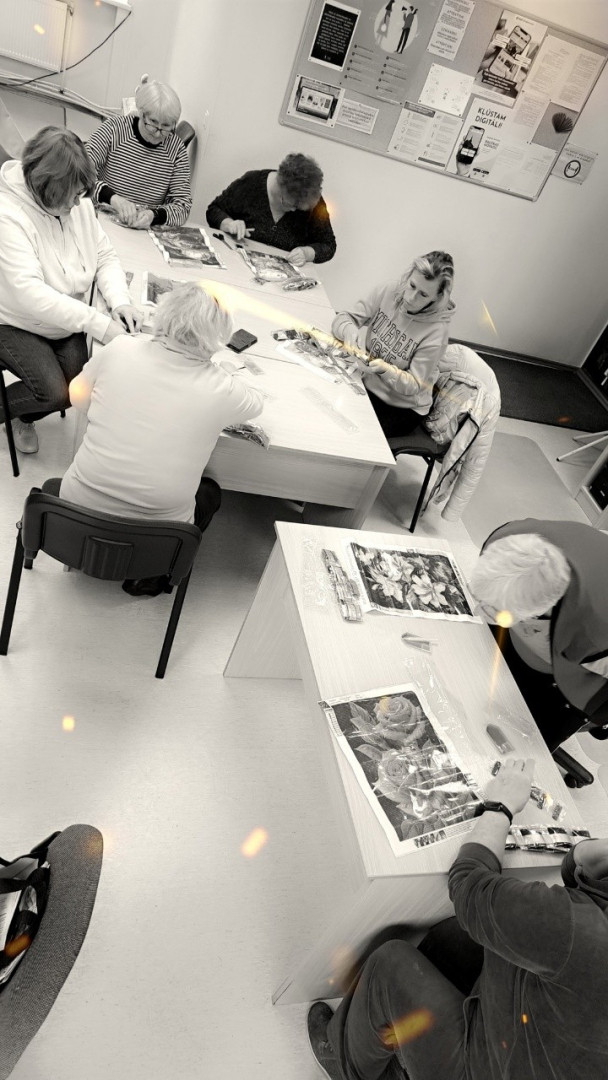 2025. gada 21. oktobrī Pāces bibliotēkā valdīja miers un radoša gaisotne, jo norisinājās radošā darbnīca, kurā tika veidotas glezniņas 3D kristālu tehnikā.