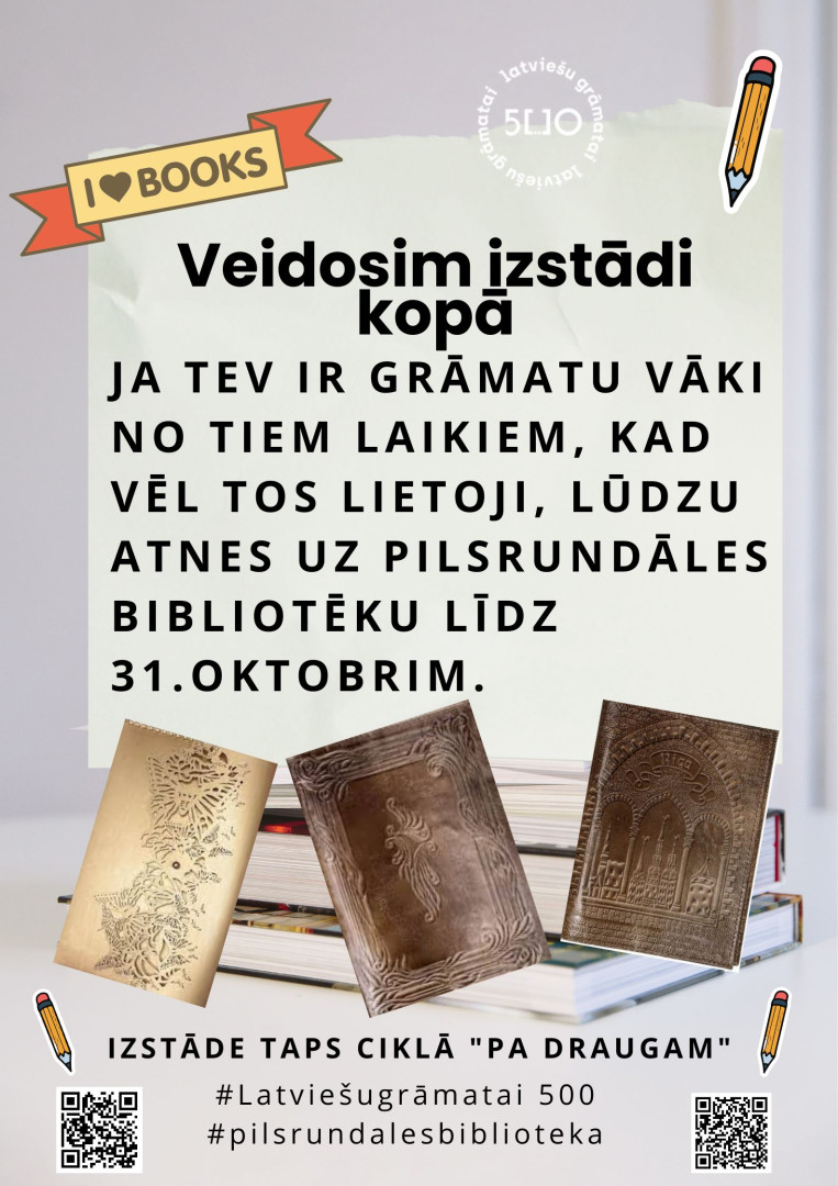 No 2025. gada 20. oktobra līdz 31. oktobrim Pilsrundāles bibliotēka aicina iedzīvotājus piedalīties izstādes "Grāmatu vāki pasargā un izdaiļo" veidošanā. Vairāk par izstādi lasiet šeit!