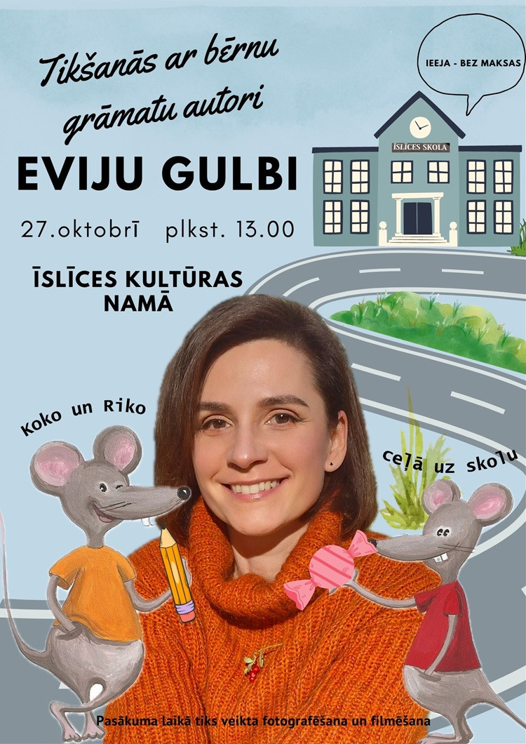 2025. gada 27. oktobrī plkst. 13.00 Rītausmu bibliotēka sadarbībā ar Īslīces kultūras namu organizē tikšanos ar iemīļoto pelēnu Koko un Riko stāstu autori Eviju Gulbi.