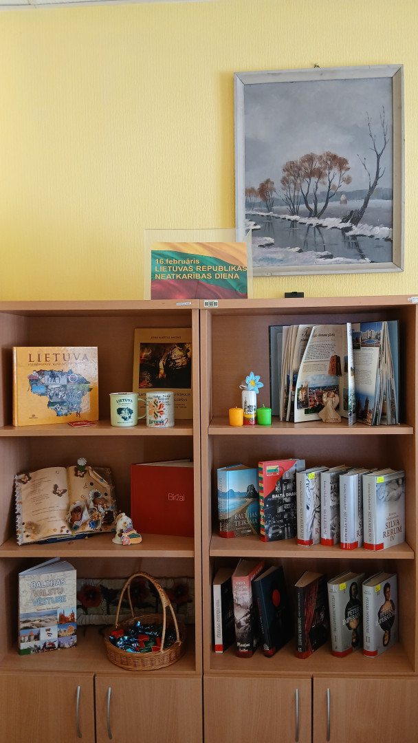 Lietuvas nozīmīgajā svētku dienā, 2026. gada 16. februārī, bibliotēkā apmeklētāji tika sagaidīti ar lietuviešu saldumiem, grāmatas tika izsniegtas lietuviski noformētā iesaiņojumā, bet lietuviešu autoru darbi un suvenīri bija izcelti atsevišķā plauktā, radot īpašu svētku noskaņu un godinot kaimiņvalsts kultūru.