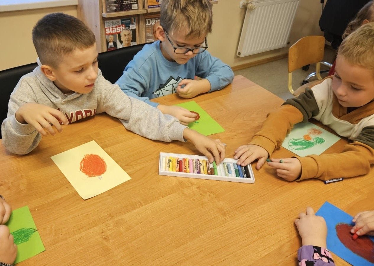 2025. gada 29. septembrī - Miķeļdienā - uz bibliotēku ciemos bija atnākuši Svitenes bērnu dārza bērni ar miķelīšiem! Iepazināmies, pārspriedām Miķeļdienas tradīcijas un lasījām Helēnas Kohas grāmatu "Kartupeļa karaļvalsts", un tad bija laiks zīmēt tomātus, gurķus un kabačus.