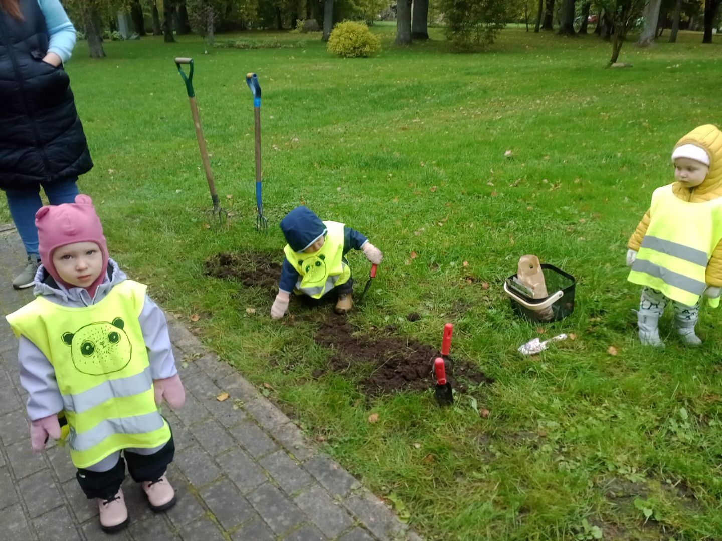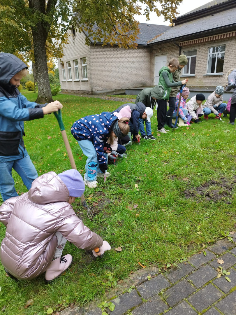 Lai padarītu vizuāli skaistu Vecumnieku parku un iepriecinātu bibliotēkas apmeklētājus, bērni ar saviem mazajiem, zaļajiem pirkstiņiem stādīja krokusus un citas pavasara sīpolpuķes, ko dāvinājusi aktīva lasītāja un puķu audzētāja Inga Malaševska. Pavasarī būs prieks visiem - lieliem un maziem - grāmatu cienītājiem. Pirmās atsaucīgās bija pirmsskolas grupas "Pūcītes" audzinātājas, kuras jau agrā otrdienas rītā kopā ar bērniem sastādīja dekoratīvos tulpju sīpoliņus. Profesionālu padomu un palīdzīgu roku sniedza dārzniece Ineta Kanna. "Labo darbu nedēļā" piedalījās  arī mazās "Mārītes", "Zīlītes" un čaklie 3.b. klases audzēkņi no Vecumnieku vidusskolas, kuri deva ieteikumus bibliotēkas telpu labiekārtošanai, kas arī bija viens no lūgumiem kā palīdzība bibliotēkai.