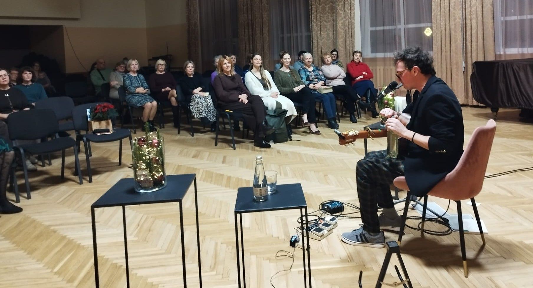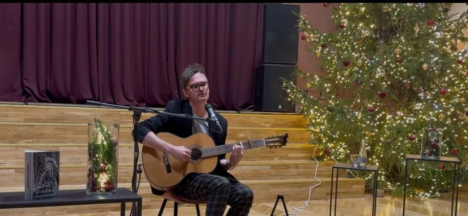 Tās pašas trešdienas vēlā pēcpusdienā Vecumnieku bibliotēka aicināja savus lasītājus un interesentus uz muzikāli literāru pasākumu "Ziedoni no jauna Ziemassvētkos skaitīt". Harizmātiskais Goran Gora jeb Jānis Holšteins - Upmanis, Ziedoņa muzeja vadītājs un Imanta Ziedoņa ideju tālāknesējs, brīnišķīgs dziesminieks un stāstnieks, klātesošajos uzbūra vienreizēju un neatkārtojamu Ziedoņa un Ziemassvētku klātbūtni!