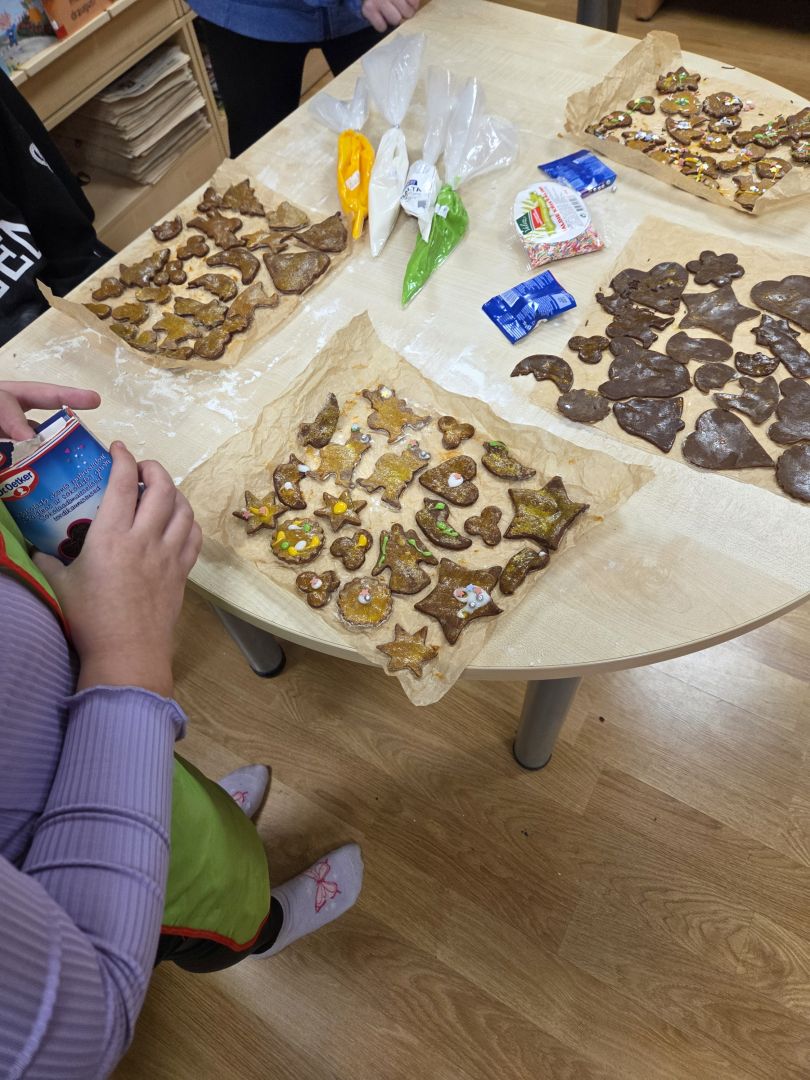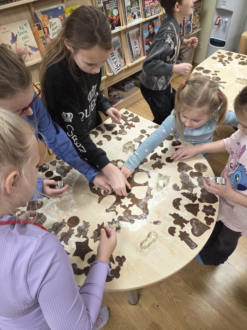 Darbnīcas laikā bērni paši izrullēja mīklu, izmantojot formiņas veidoja piparkūkas un vēroja cepšanas procesu. Kad piparkūkas bija gatavas, varēja ķerties klāt pie rotāšanas. Gala rezultātā mums sanāca ļoti garšīgas piparkūkas. Kopā mums izdevās radīt Ziemassvētku noskaņu bibliotēkā.