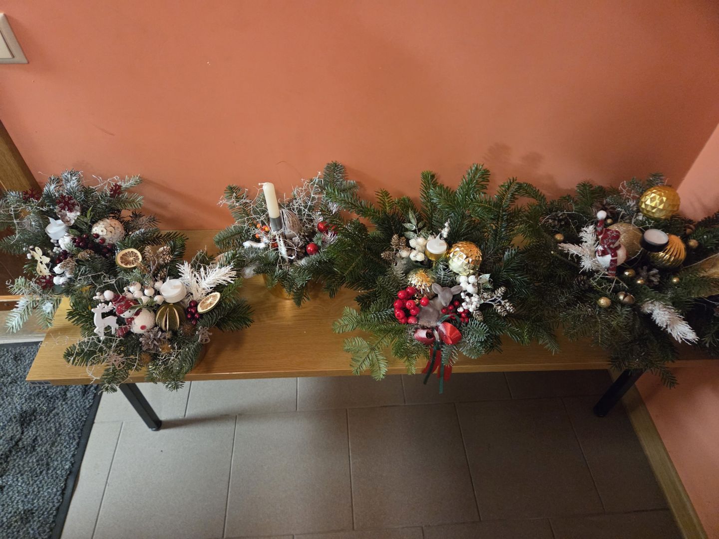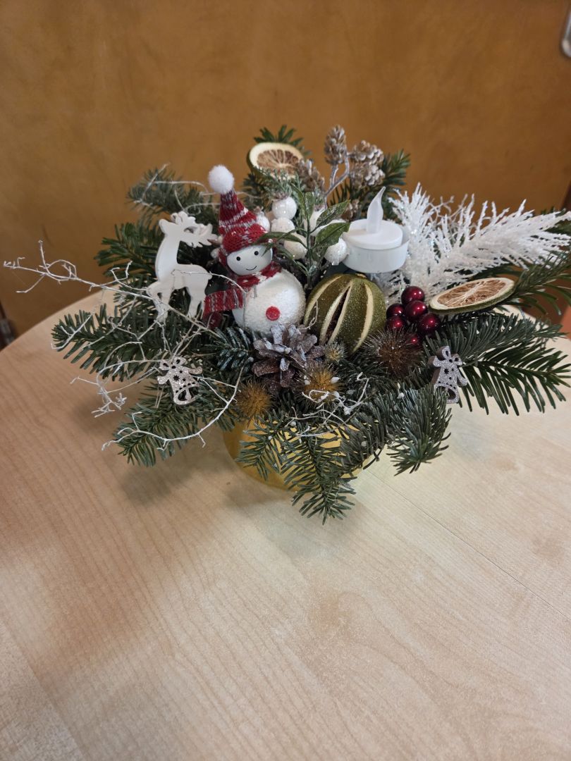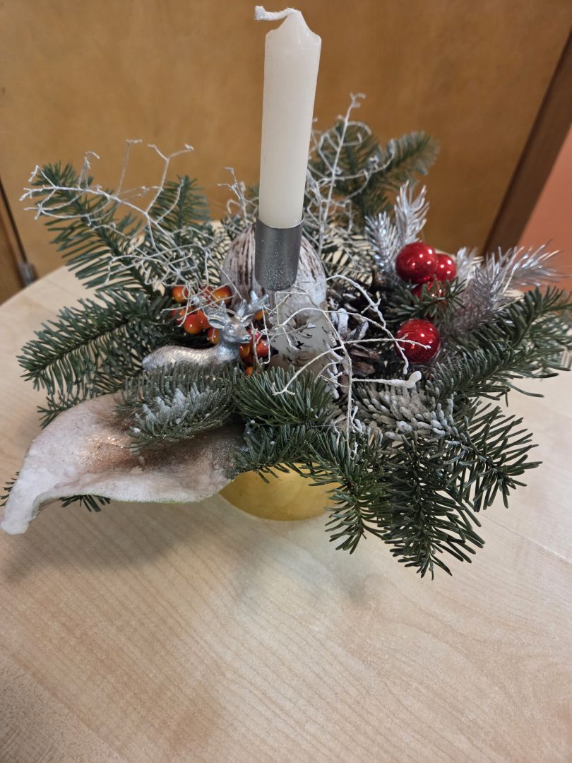 Darbnīcas laikā tapa skaisti Ziemassvētku dekori. Dekora izveidei tika izmantoti egļu zari un dažādi Ziemassvētku rotājumi. Dalībnieces pašas varēja izvēlēties dekora krāsas un lielumu.