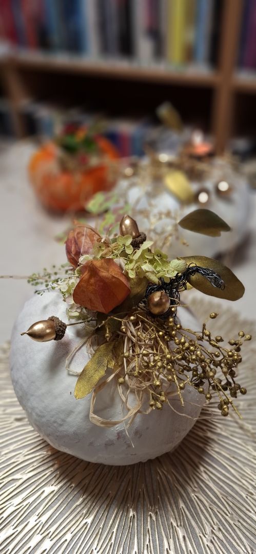 Izveidotās kompozīcijas kļuvušas par īpašu rudens rotu mājās, kā arī skaistu akcentu gaidāmajos Helovīna svētkos.