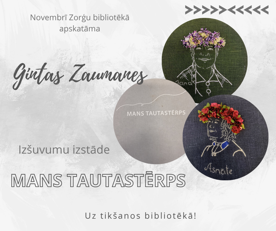 Latvijas valsts dzimšanas dienas mēnesī - novembrī Zorģu bibliotēkā būs iespējams aplūkot novadnieces rotu meistares Gintas Zaumanes miniatūrizšuvumus, kas tapuši Latvijas simtgadei veltīta projekta "Mans tautastērps" ietvaros.