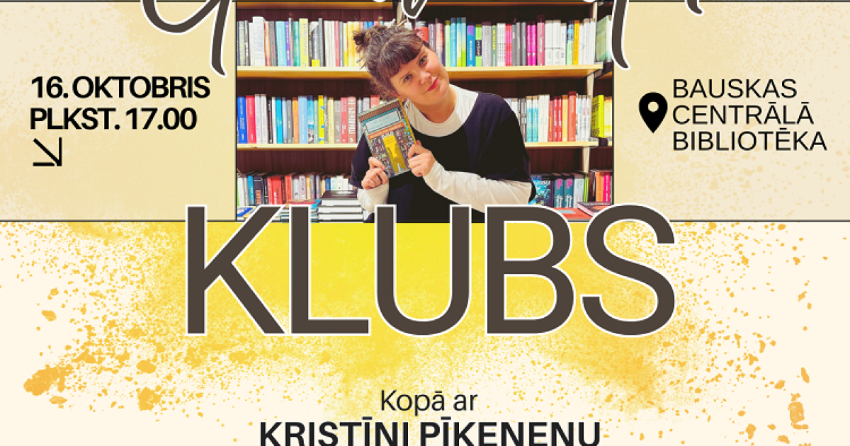 2025. gada 16. oktobrī plkst. 17.00 lasītmīļi tiek aicināti uz Bauskas Centrālo bibliotēku, lai tiktos Grāmatu klubā.