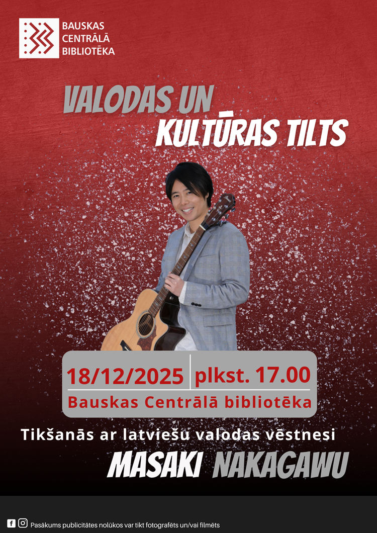 2025. gada 18. decembrī plkst. 17.00 Bauskas Centrālā bibliotēka aicina uz pasākumu "Valodas un kultūras tilts. Tikšanās ar latviešu valodas vēstnesi Masaki Nakagawu".