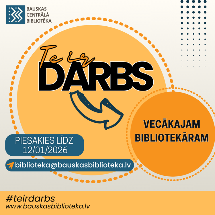 Bauskas novada pašvaldības iestāde "Bauskas Centrālā bibliotēka", reģistrācijas Nr. 90000046645, izsludina pieteikšanos uz Bauskas Centrālās bibliotēkas galvenā bibliotekāra amata vakanci uz nenoteiktu laiku (1 amata vieta).